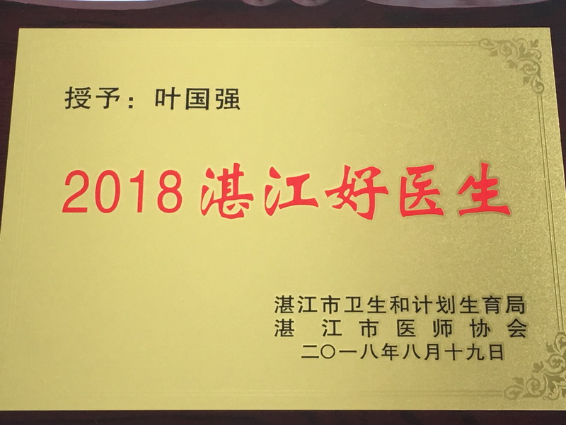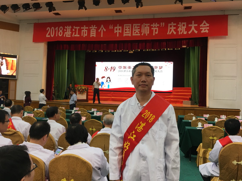 为大力弘扬 “敬佑生命、救死扶伤、甘于奉献、大爱无疆”的崇高精神,展示新时期医务工作者奋发向上的精神风貌,进一步营造尊医重卫的良好氛围,2018年8月19日上午,湛江市卫计局在海滨宾馆国际会议中心隆重召开2018年湛江市首个“中国医师节”庆祝大会。大会对我市各级医疗卫生单位评选出的120名“湛江好医生”进行了表彰,我中心叶国强医生荣获“湛江好医生”称号。