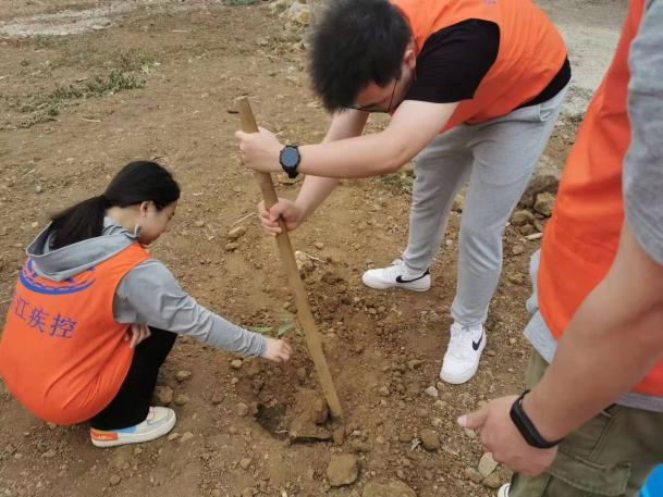 种植现场,青年志愿者们撸起袖子,以饱满的热情投入栽种行动中。大家干劲十足:挖坑、扶苗、填土、浇水……各个环节衔接有序、配合默契,认真种下每一株树,现场热火朝天。经过大家的共同努力,一棵棵树苗迎风挺立。看着种植的一片片新绿,志愿者表示,树木如树人,绿化植树活动加深了对习近平总书记“为人民种树、为群众造福”绿色发展理念的理解,青年亦要如树苗一样,努力向下扎根,向上生长,努力充实自己,成长为有益于家国的参天大树。